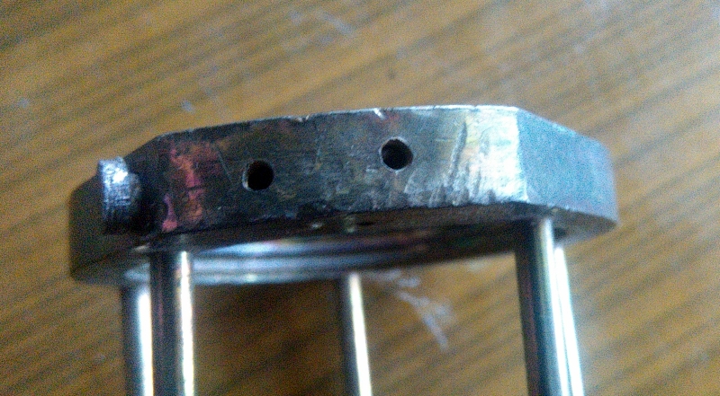 Осталось заправить и разжечь. Пробка бензобака спрятана внутри горелки в виде вот заглушки со шлицом. При работе она очевидно недоступна.